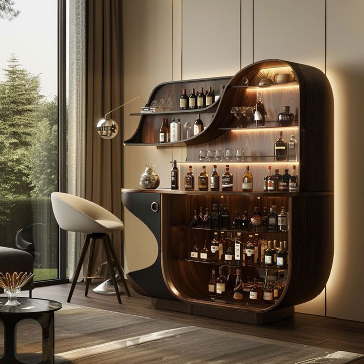 Bar Furniture Cabinet in the Kitchen Area Brown Colour