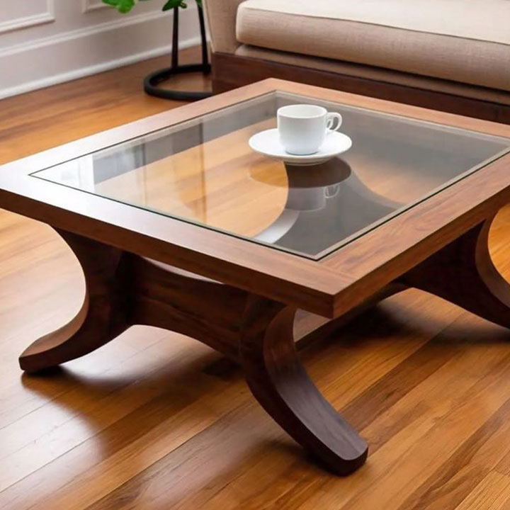 Wooden Coffee Table With Shiny Exotic Wood Finish
