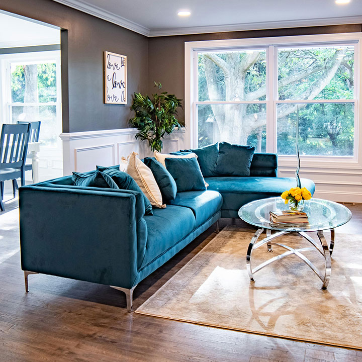 Sectional Sofa (3 + Lounger) In Cool Grey Colour