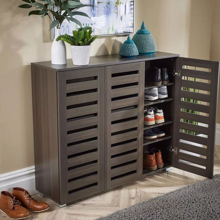 Wooden 2 Door Shoe Cabinet in Cochwood Brown Finish